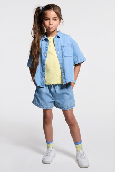 HAPPY DAYS*Najniższa cena z 30 dni przed obniżką : 45,99 PLNŻółta gładka koszulka z ażurowymi wstawkami z krótkim rękawem dla dziewczynkiOKAIDI2 kolorach45,99 PLN -30% 32,19 PLN -