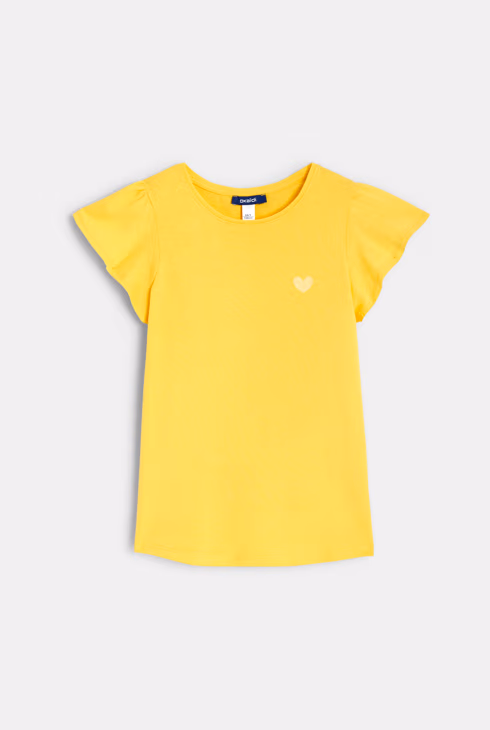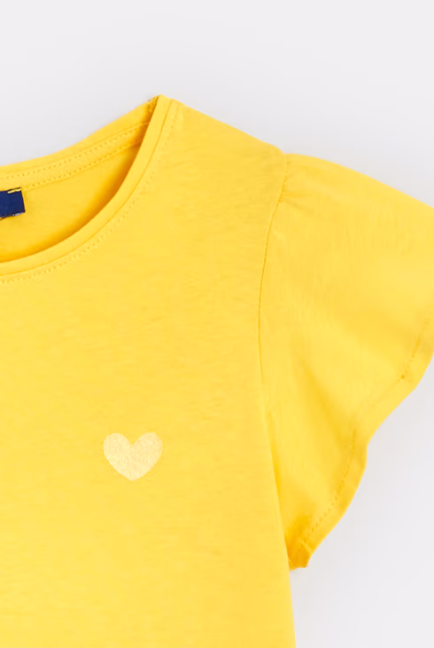Koszulka z falbankowym krótkim rękawem żółty dziewczynka
