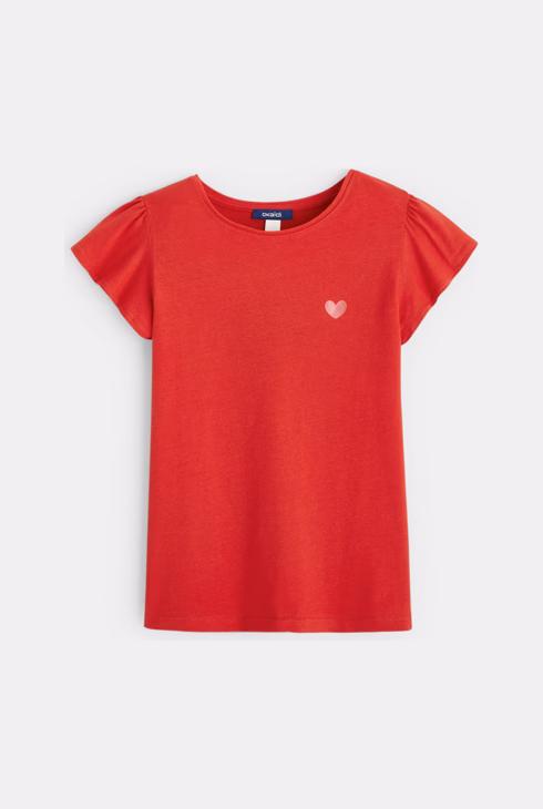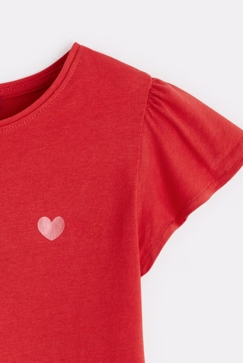 Koszulka z krótkim rękawem z falbankami fioletowa dla dziewczynki