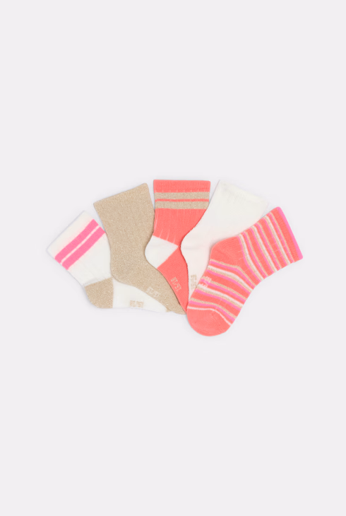 Różowe skarpetki w paski niemowlę dziewczynka (5 par)
