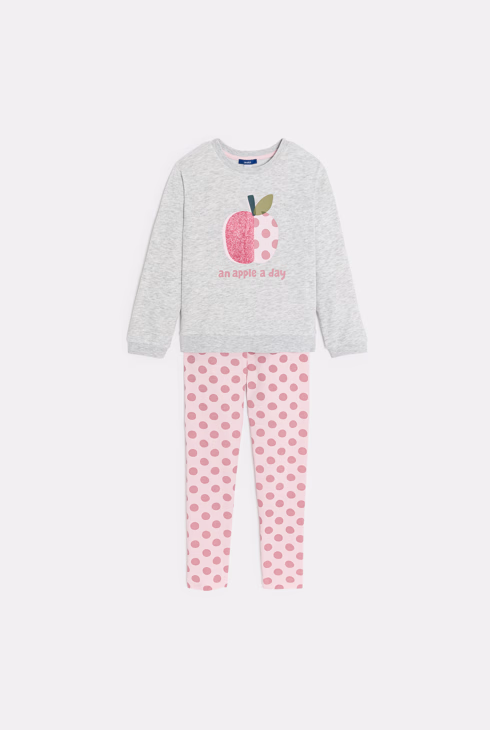 Szara dwuczęściowa piżama z dzianiny z napisem dla dziewczynki