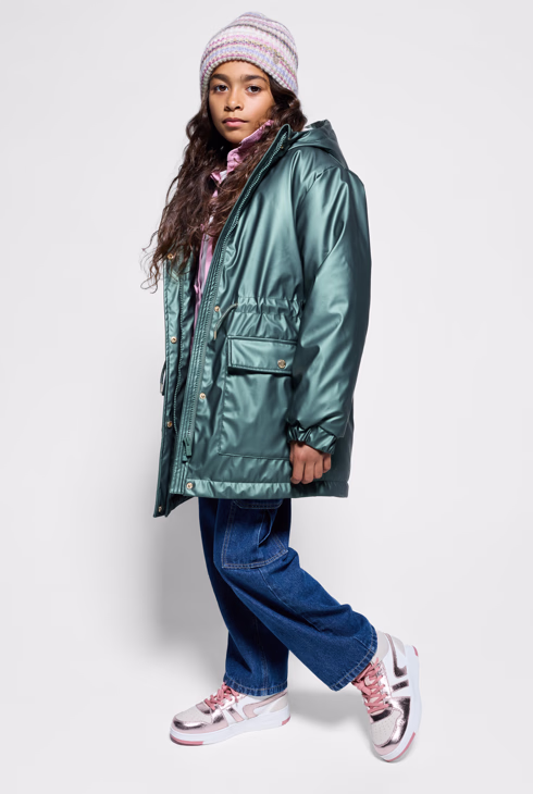 Zielona wodoodporna ocieplana kurtka z kapturem dla dziewczynki